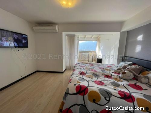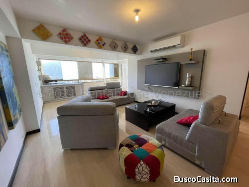 Alquiler Hermoso apartamento totalmente remodelado con acabados de primera, posee 3 cómodas habitaciones, más un estudio, 2 baños principales mas uno de servicio, relajante vista al Avila, muy bien distribuido, totalmente equipado, 2 puestos de estacionamiento, amplias áreas sociales con piscina, jardines y cancha de tenis. Adicionalmente cuentan con vigilancia privada y numerosos puestos de visitantes.