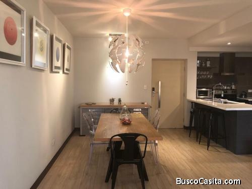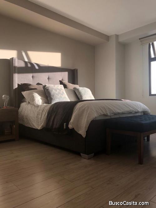 Apartamento en renta, amueblado y equipado, cuenta con 2 habitaciones y 2 estacionamientos, sala, comedor, cocina con top de cuarzo y equipada con electrodomésticos, área de lavandería, baño de visitas, habitación principal con baño completo.