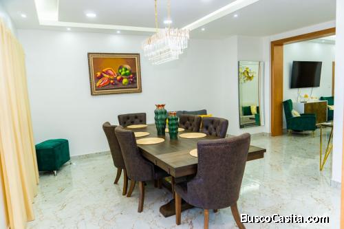 Este apartamento esta cerca de la Núñez de Cáceres y cuenta con un amueblado de primera, tiene mucha ventilación y el mismo está en el piso 5