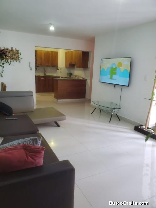 El apartamento cuenta con 100 m², ubicado en el piso 4, distribuido en 3 habitaciones, incluyendo habitación principal con baño privado y vestidor, baño común, amplia sala, comedor, cocina con desayunador, área de lavado y 2 parqueos.