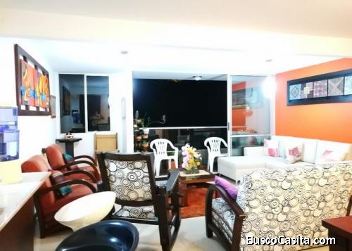 Renta de apartamentos amoblados en medellin ENVIGADO, Sector Cumbres. Amplio Apartamento con 3 alcobas, 2 baños cabinados, vestier en la alcoba principal, sala-comedor y un estudio Abierto. Tiene cocina integral con barra americana y zona de ropas. Un amplio y agradable balcón con una excelente vista Campestre. El Apartamento es perfecto para una estadía con la familia.
