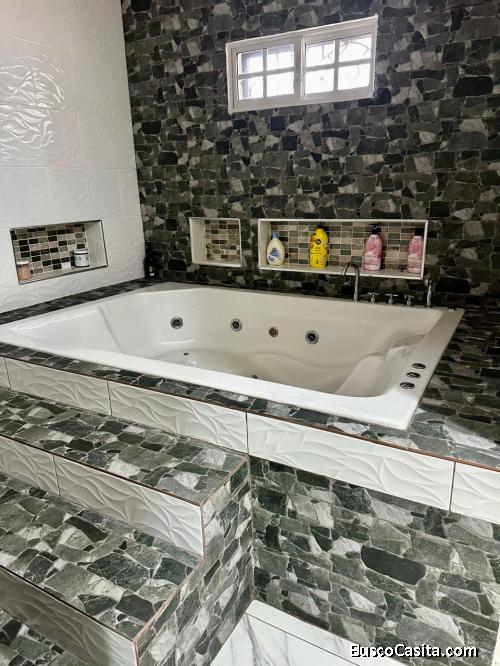 Baño de la habitación principal con jacuzzi y clóset