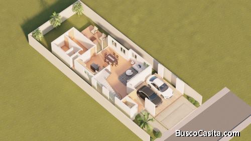 -Marquesina doble, Sala, Comedor, Cocina, Área de lavado, Dormitorio de servicio o de huésped con su baño.