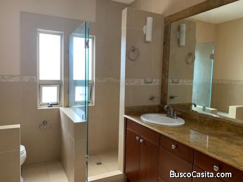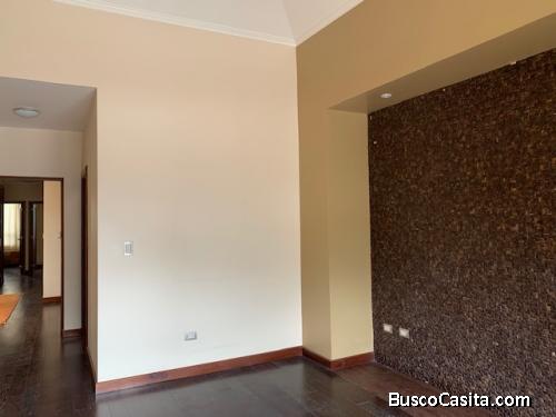 Casa ubicada en condominio Residencial de 240.00 Mts2 de construcción cuenta con 4 Habitaciones, 3.5 Baños, 2 Parqueos, de 2 niveles, esta Hermosa residencia se encuentra ubicada en uno de las áreas residenciales del entorno hacia carretera a El Salvador, además de estar a pocos minutos de la Ciudad Capital ya que cuenta con dos accesos directos a las vías principales. En condominio es pequeño y acogedor, con garita de seguridad, guardián, área verde común, la propiedad construida en un concepto americano de áreas abiertas (sala, cocina y comedor) se renta semi amueblada, se aceptan mascotas, cuenta con un bonito balcón en habitación principal, habitación de servicio, bodega, lavandería, línea blanca en cocina, área de pérgola techada y además de la sala principal y sala familiar tiene una salita tipo solárium bien iluminada y acogedora. De las 4 habitaciones, una podría ser un estudio en 2o nivel si así lo desean.