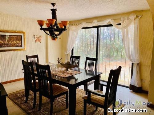 Linda y amplia casa en venta y renta en colonia cerca de la Universidad de San Carlos de Guatemala, con doble garita de ingreso, seguridad 24/7, rondines en el interior de la colonia, talanquera de acceso con tarjeta para residentes. Buenos y rápidos accesos hacia el Sur de la ciudad como para el Norte vía periférico, y acceso hacia zona 9, 10 etc. La casa en venta cuenta con amplios y bien iluminados ambientes, amplio jardín de aproximadamente 150 mt2, todo el piso de la casa es de porcelanato recién cambiado solo la sala principal con piso de parquet de chichipate, con una bella chimenea, todas las puertas y zócalos de la casa en venta y renta son de madera sólida. La cocina es de Cocinas Exclusivas, muy amplia y moderna con desayunador, en el primer nivel tiene área de estudio u oficina y medio baño de visitas. Además, tiene un enorme salón de juegos con baño completo y salida independiente trasera que incluso podría funcionar como un pequeño apartamento independiente o como 5a habitación si así se desea. Amplia habitación de servicio con baño completo e ingreso independiente.