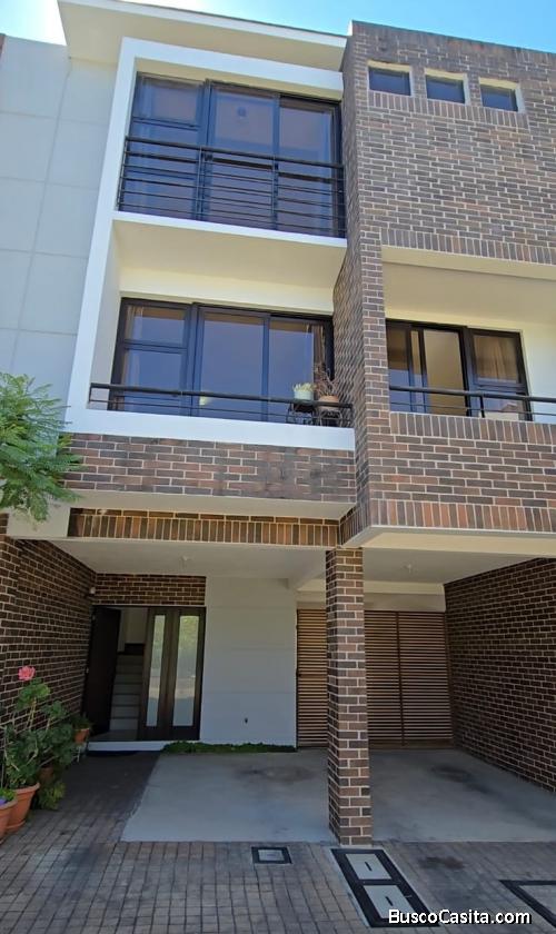 Casa de 3 niveles con finos acabados, lámparas, cortinas, panel solar.