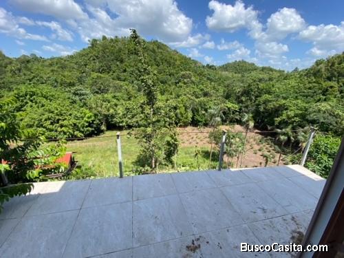 casa CONSTRUCCION NUEVA con piscina, luz electrica y sistema de agua instalados en zona PRIVADA (solo entran los dueños), en el tope de la loma , la casa tiene los balcones de la habitacion con vista al rio . 2 hab. 2 baños, 102 mt2. ubicada en loma de los jabieles, bayaguana a pocos kms. del balneario Salto Alto, 13 tareas alrededor de 8,000 mt2. de tierra excelente para cultivar,