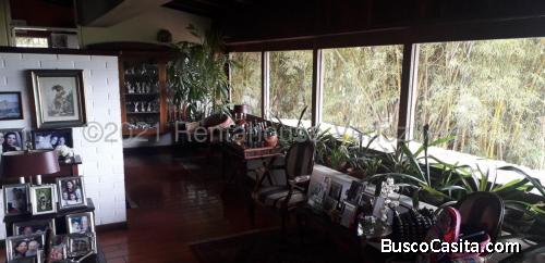 Hermosa y acogedora casa tipo cabaña, rodeada de bosque y maravillosos clima de montaña. Ventanal que permite disfrutar de una vista espectacular al Avila. Privilegiada, ya que no tiene casas al rededor por el terreno que no permite construir. Tiene varios niveles con acceso a jardines. Amplio estacionamiento para al menos 7 carros. Parque infantil. Calle cerrada con vigilancia.