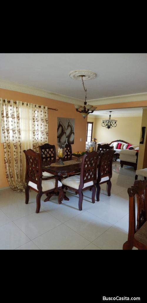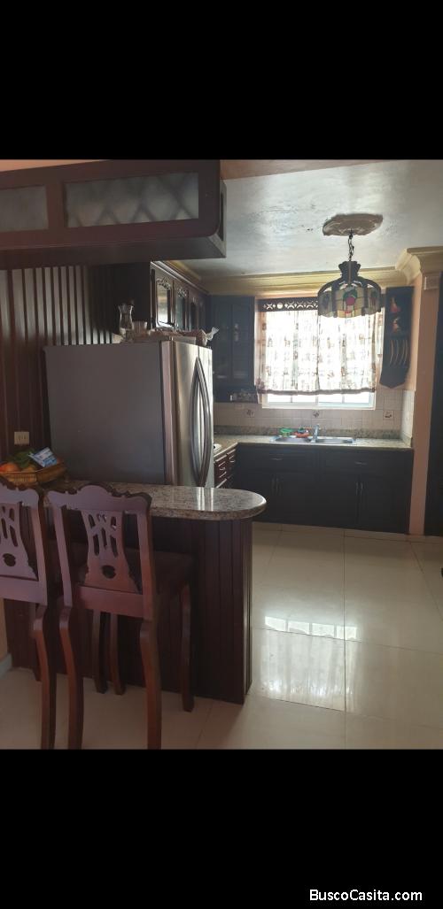 4 habitaciones con baño mas una de servicio, sala ,comedor, cocina, alarma, porton eléctrico marquesina para tres vehículos ,patio grande un apartamento en el segundo nivel de dos habitaciones 455 metros de solar y 320 de construcción,calles asfaltadas..