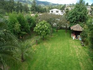 La propiedad es independiente, la casa tiene mampostería de ladrillo visto y se observa bastante madera; existen amplios espacios verdes y hermosos jardines. Además, observamos una buena cantidad de árboles frutales y sembríos de: Legumbres y hortalizas.