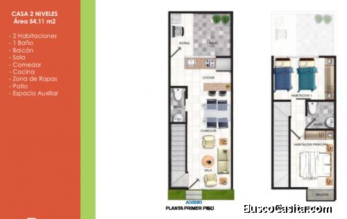 CASAS de 2 niveles con área de 51mt2; ampliables a 81mt2 con un tercer piso.