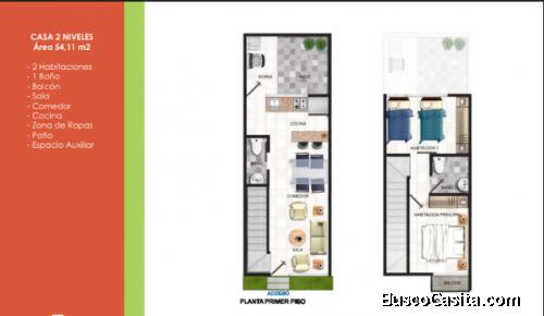 CASAS de 2 niveles con área de 51mt2 aproximadamente; ampliables a 81mt2 con un tercer piso.