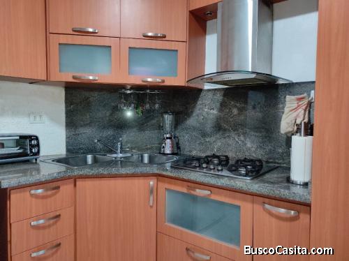 Acogedor apartamento con sala, cocina empotrada con tope de a gas y pantalla de granito, desayunador, baño remodelado, piso de cerámica, aire acondicionado central de 3 toneladas, piso bajo. El Conjunto Residencial está estratégicamente en la Ciudad de Lechería y cuenta con las siguientes bondades: Tiene área de piscina, parrillera, dos ascensores en perfecto funcionamiento, circuito cerrado de seguridad y vigilancia las 24 horas.