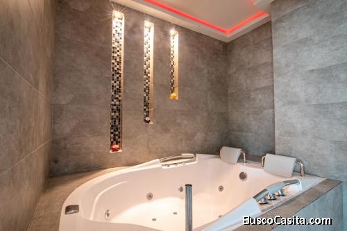 Contiene jacuzzi al interior de apartamento.