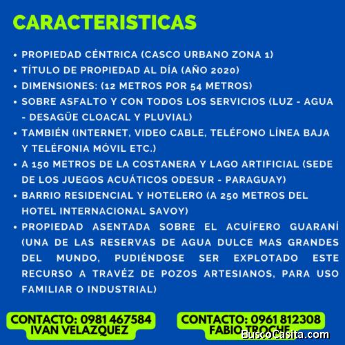 PROPIEDAD EN VENTA EN EL CASCO CÉNTRICO DE ENCARNACIÓN PARAGUAY - A 150 METROS DEL LAGO ARTIFICIAL Y COSTANERA