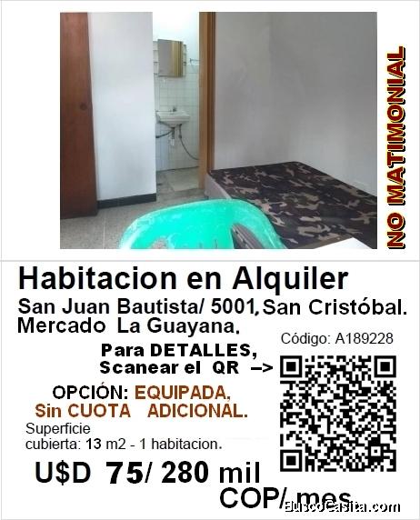 La Habitación contempla closet para ropa, mesa de apoyo, y área para cocinar y refrigerar, empotrado, así como las respectivas piezas sanitarias básicas, en óptimo funcionamiento.