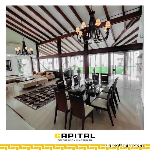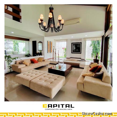 Te presentamos esta linda casa de dos plantas, con un amplio jardín, y todos los ambientes finamente decorados; rodeada de colegios, universidades, restaurantes, bancos, Country Club Las Palmas, Empresas Petroleras y otros.