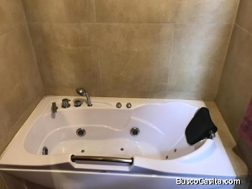 • Baño principal con hidromasaje y ducha estilo cascada, Porcelanato en pisos y paredes, puertas de vidrio templado.