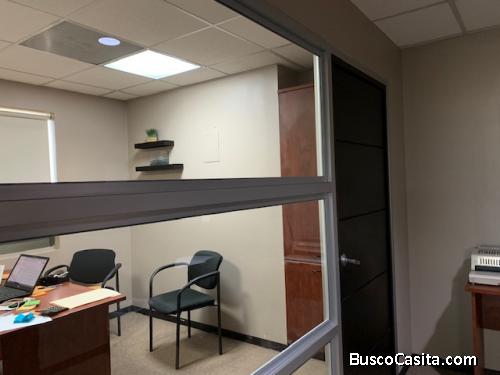 Amplia y elegante oficina en renta, nivel alto, hermosas vistas, amplios y bien distribuidos ambientes, área de recepción, cocineta, sala reuniones, A/AC, ojos de buey, cuenta con 2 amplias bodegas, 2 baterías de baño, 7 parqueos para la oficina exclusivamente. El edificio cuenta con amplios parqueos de visita en sótano, excelente ubicación, entorno comercial. Precio incluye mantenimiento, más impuesto.