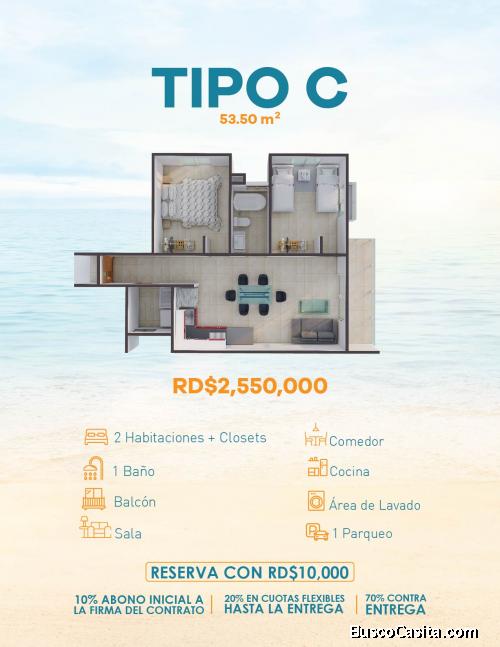 PROYECTO EXCLUSIVO DE APTOS EN BOCA CHICA, TODOS CON VISTA AL MAR, a 50 Mts. de Distancia