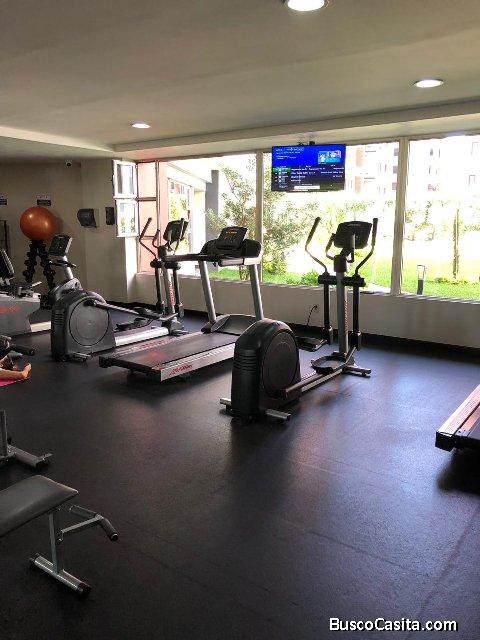 Cuenta con sala-comedor, cocina, 2 dormitorios con closet, 2 baños, balcón, área de lavandería y 2 parqueos.