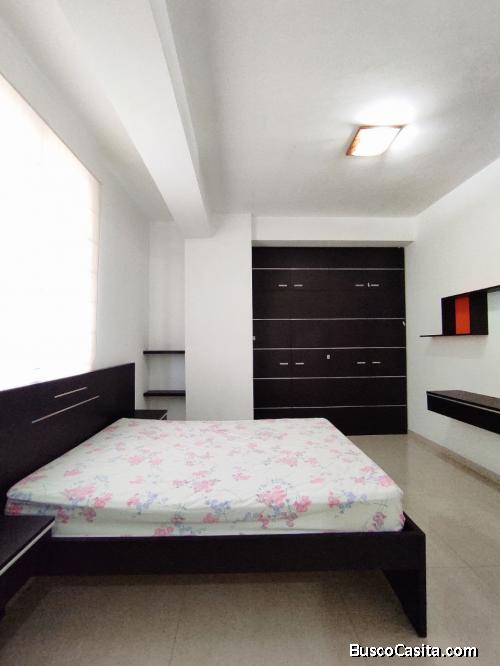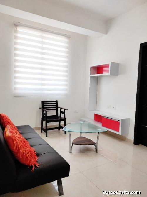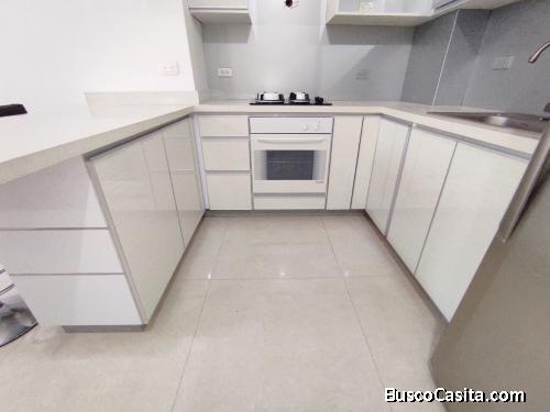 Un apartamento a estrenar, con cocina tope de Silestone blanco, con tope en vitrocerámica a gas, piso de porcelanato, aires acondicionados tipo splits.