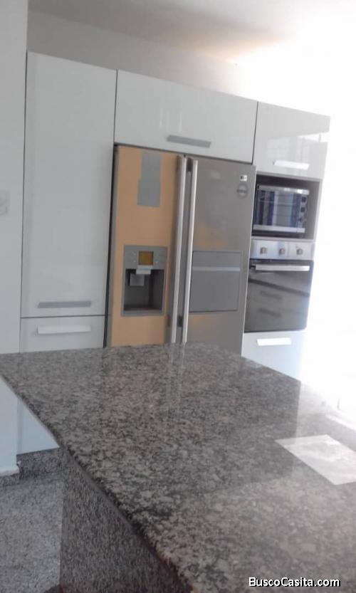 ▪Cocina moderna con desayunador,  equipada, estufa eléctrica,  campana, horno y nevera.