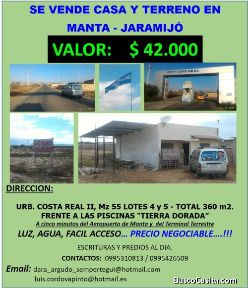 VENDO CASA & TERRENO EN MANTA-JARAMIJÓ