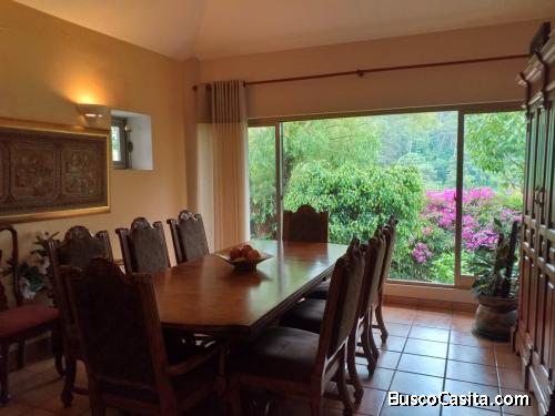 SE VENDE ESPECTACULAR CASA con hermosa vista, ubicación privilegiada y privada amplios e iluminados ambientes, cuatro habitaciones, cinco baños completos y uno de visitas, parqueo para tres vehículos, estudio, balcón, bodega, lavandería, un apartamento independiente de 250 metros cuadrados con dos habitaciones y dos baños completos. jardines alrededor de la casa y pérgola, dos pajas de agua, con opción de dividir la propiedad