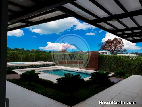 Hermosa casa campestre a solo 5 minutos de la ciudad la ciudad de villavicencio, rodeada de bellos paisajes con un enorme lago, amplia y completa zona social. Cocina americana, despensa, estudio, dos salas Tv, zona gym, zona hamacas, deck que bordea la piscina, jacuzzi, zona BBQ, tanque propio 3000 lts agua, antena Wifi propia y arboles frutales que te conectan con la tranquilidad y descanso que te ofrece la naturaleza brindándote la comodidad que tu familia y amigos disfrutarán. Excelentes acabados y aislamiento térmico.