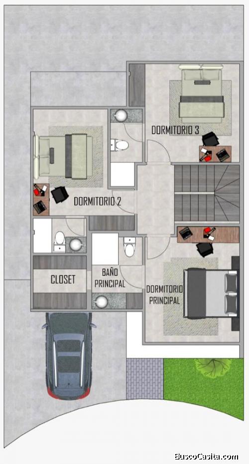 Dormitorio máster con Walking closet, 2 dormitorios secundarios con baño privado.
